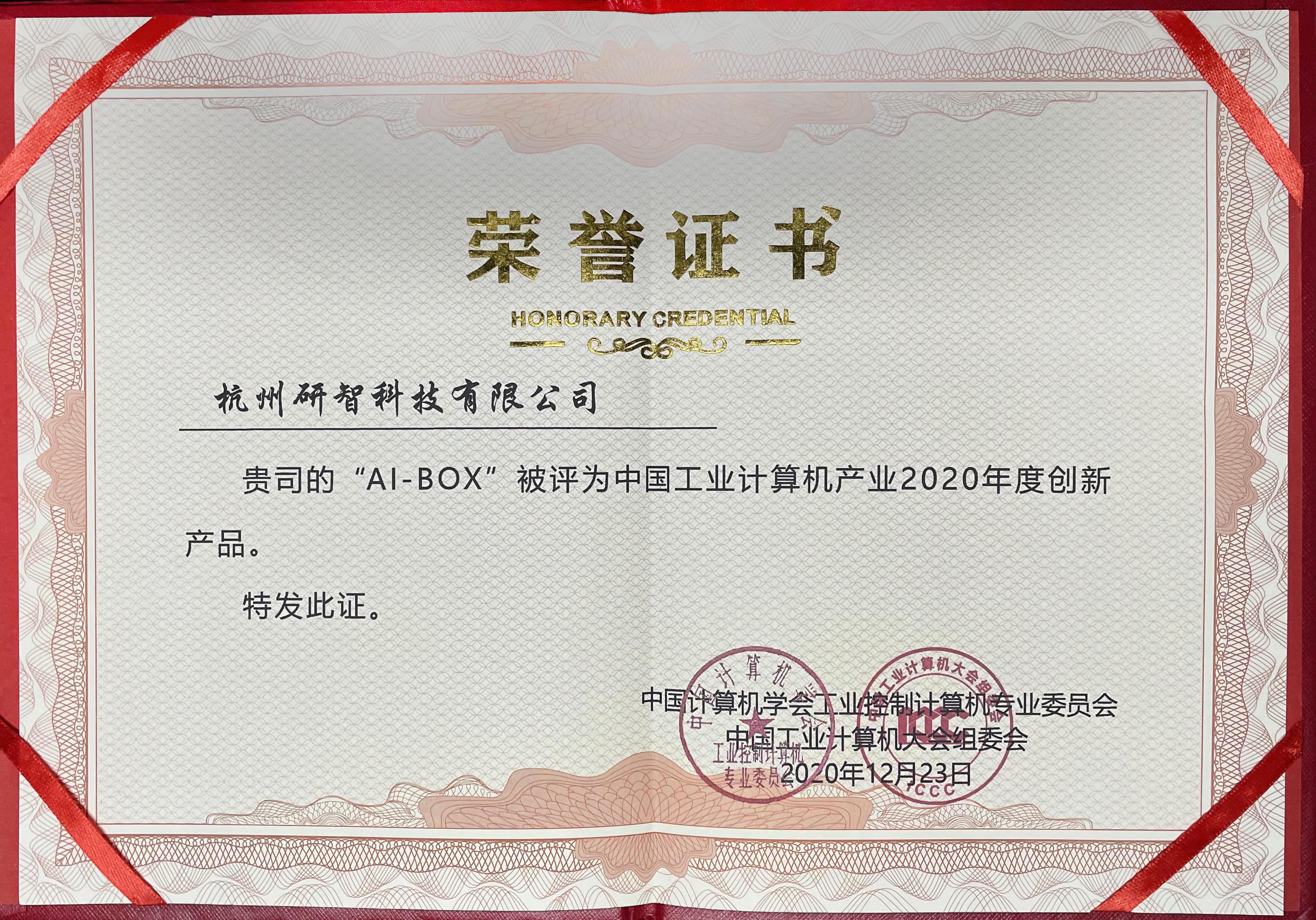 杭州研智科技的人工智能AI-BOX系列產品榮獲“中國工業(yè)計算機產業(yè)2020年度創(chuàng)新產品”獎,同獲此獎的共有杭州和利時、浙江中控研究院、北京控制工程研究所、研祥智慧物聯(lián)等10家單位。此獎項用于表彰2019-2020年度最新推出或升級的具有創(chuàng)新性的工業(yè)計算機產品,在產品的功能性、創(chuàng)新性、實用性、開放性等方面具有典型性、代表性。